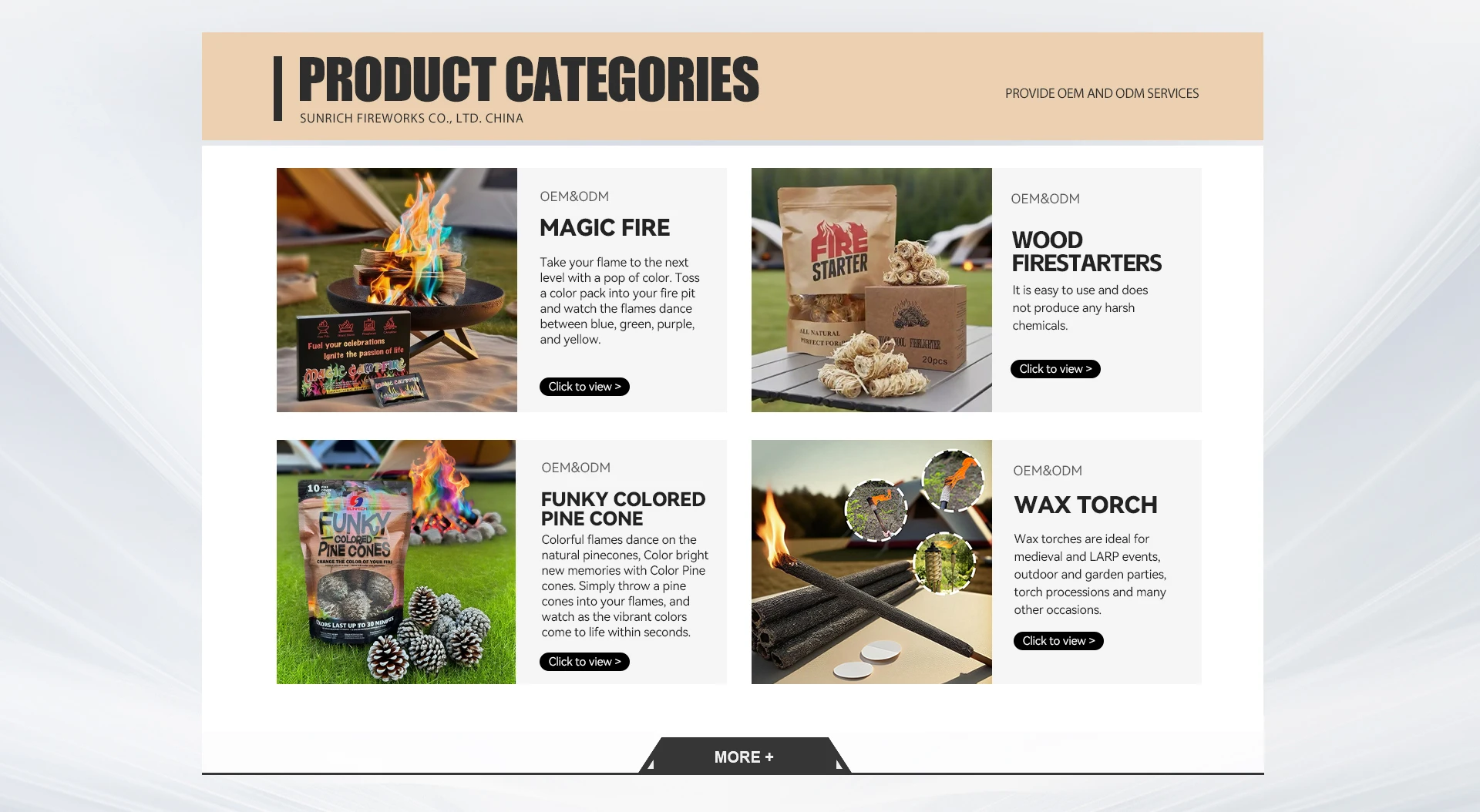 Sunrich Factory is a professional manufacturer specializing in high-quality flame-themed products, including wax wood rolls, Magic Flame Powder, torches, and colored pinecones.